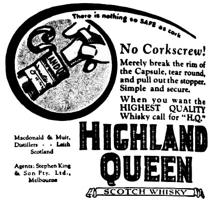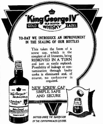 Last week we focused on the New Zealand advertising campaign which proclaimed "No Corkscrew Required." At this time a similar advertising campaign was under way in Australia. The notices appeared in issues of the Argus, Melbourne, Australia.