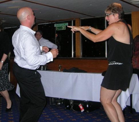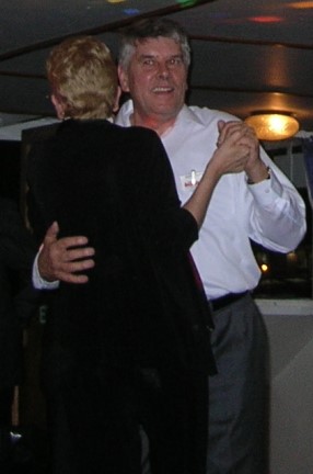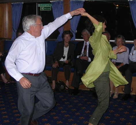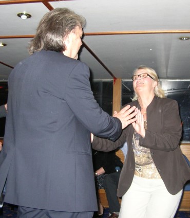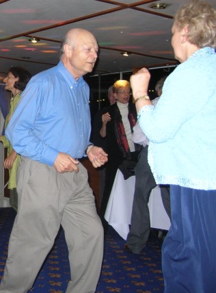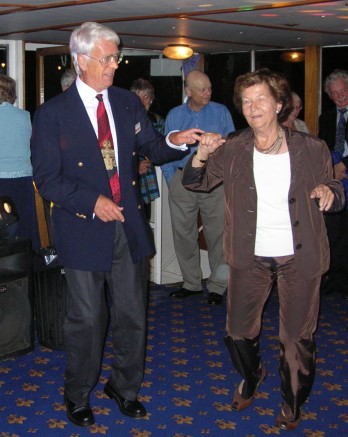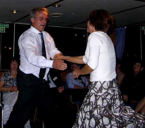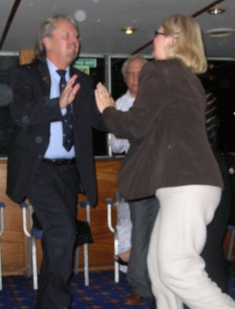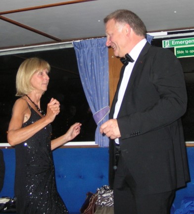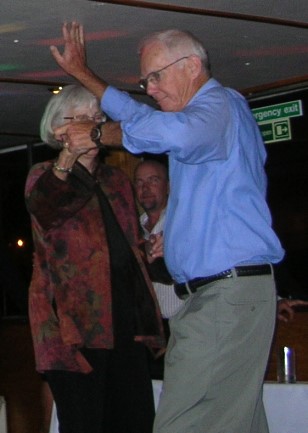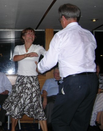 On August 26, 2009 members and guests of the International Correspondence of Corkscrew Addicts (ICCA) boarded the M. V. Eltham for dinner and dancing on London's Thames River. In addition to ambitious dancing to CDs spun by a DJ, the addicts were entertained by the Scandinavian singing group pictured above. From left to right are Anne Solheim, Helgir Solheim, Lis Arnbjerg, Anne-Lise Køhler, Martin Jessen, and Jens Arnbjerg.