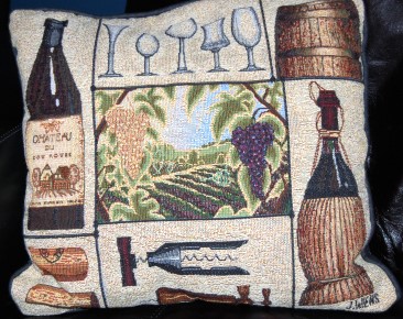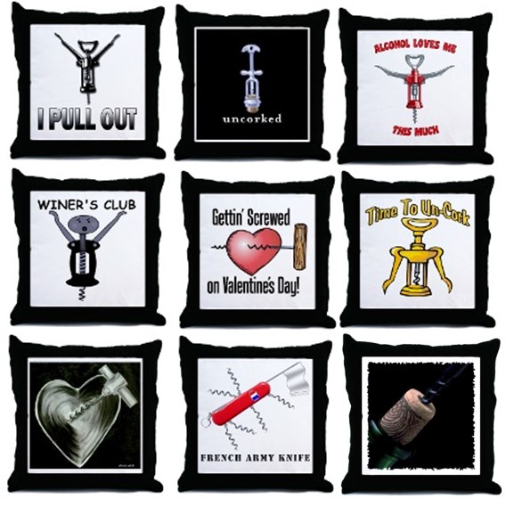 The "Art of Winemaking" pillow depicts a Screwpull