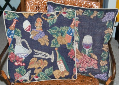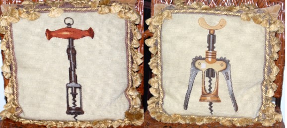 and a wood double action extractor.One of the pillows in this tapestry set shows a Screwpull corkscrew.