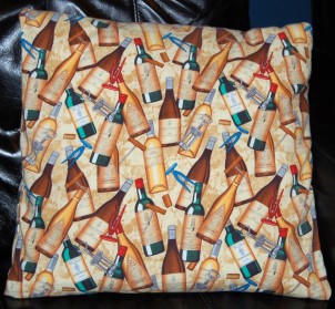 A pillow made by Deborah Bull from material purchased on the Internet.