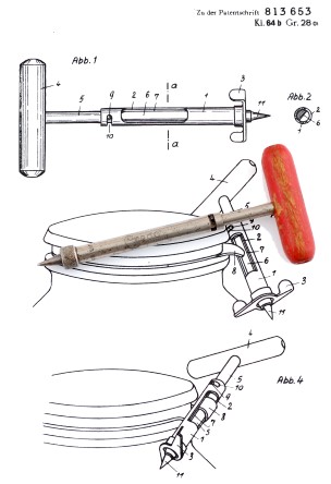 On July 8, 1949, Gustav Kracht applied for a patent for his Öffner für Einkochgläser (an opener for cooking glasses). German patent 813,653 was issued September 17, 1951.