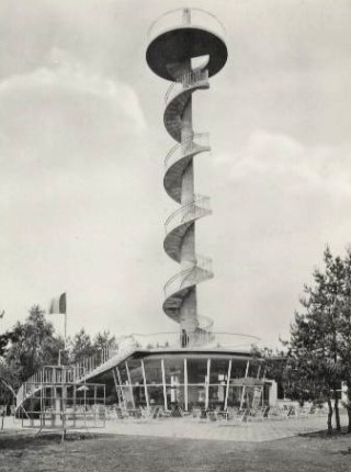 Also found in Beringen (Koersel area) is the Uitkijktoren Café-Restaurant with its corkscrew staircase. Then and now photos shown.