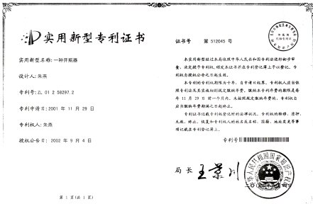 No country source was shown on the corkscrews or packaging. We wrote to the seller and received this copy of the Chinese Patent No. ZL 98 2 46943.B: