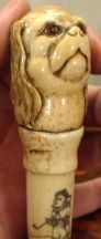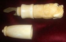 The first group is offered as "ivory" or "bone" carvings. Some have the mark "Syroco" on the bottom. Note that they all have the same worm.