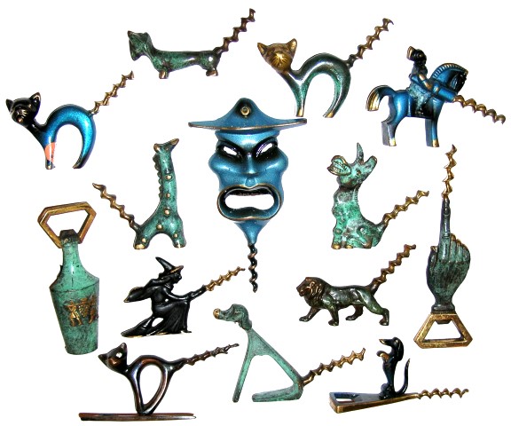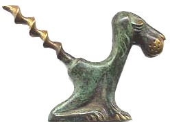 With the exception of the urn with cap lifter top, all of the Israeli corkscrews pictured here are cast complete with somewhat inadequate worm. The pieces are designed for form and not necessarily for function. The urn has a similar worm hinged to the back.