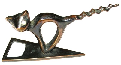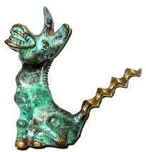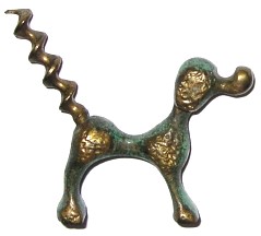 During the 1930s a number of applications for Registered Designs for animal figures with corkscrews and other objects were filed in England. These included a variety of dogs, elephants, pixies, cats, and pigs. The free standing corkscrews were also produced in Sweden and Austria. Unlike the Israeli one piece castings, all of the figure were castings and the corkscrew was either screwed in to the casting or add to the casting. In the first column below are Israeli corkscrews. All of these were apparently produced after the non-Israeli designs in the second and third columns.