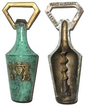 Getting steel worms in that period was a problem because of import restrictions and government regulations that gave priority to the use of steel to what was considered as more 'urgent' or 'necessary' utensils. Hence we see all these corkscrews cast all in on piece in brass or bronze, a material that had less restrictions when used. The method was in addition cheaper but the corkscrew unfortunately inferior. The same can be said to apply for many of the former Communist countries who had similar regulations resulting in many of the corkscrews we find that are cast in one piece."