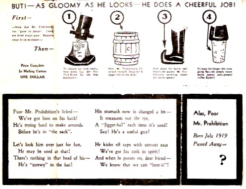First - Note that Mr. Prohibition has "gone to pieces" There are three major parts. Remove these from enclosure Then -