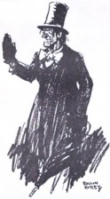 4. In "The Wrecking of the 18th Amendment" (1943, The Alcohol Information Press), Ernest Gordon writes "the novelist Dickens took a sharp dislike to them (English nonconformist ministers) and caricatured them at every opportunity. Stiggins...was one his creations... a man with threadbare black clothes, a prim-faced, red-nosed man with long thin countenance.... He carries the inevitable umbrella of the Englishman and wears the tall hat of the Abe Lincoln period."