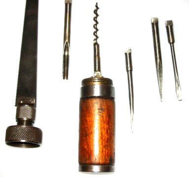 Wirtz, Virginia - Does anyone have any information on this tool kit with corkscrew or any similar examples? Age? Manufacturer? Catalog pages? Other details?