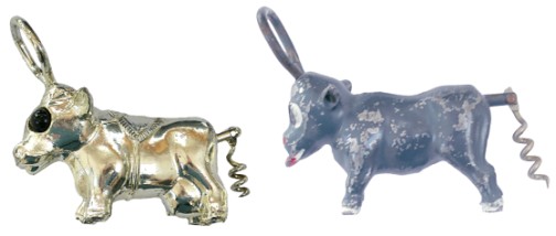 Appenzell, Switzerland - Corkscrew collector Andres Breitenmoser lives in this small Eastern Swiss Village (population 5,000) about a two hour train ride from Zürich. Andres has amassed a rather large collection of corkscrews including numerous figural types. In his collection are about thirty pot metal animal corkscrews. He has several cows (or bulls) which were sold as souvenirs and have place names including Utah, Texas, Nebraska, California, Mexico, and Banff tacked on them. He also has horses, deer, dogs, donkeys, and a seal. Andy has put together a PDF with information (in German) and pictures of his collection (click here). Andy would really like to know the manufacturer of these corkscrews and where they were produced. Check yours for marks or other details and email Don Bull, Editor.