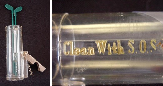 Shortly after "Connect the Corkscrews" was published, reader Kenn Cameron sent a photo of his clear example on which is printed "Clean With S. O. S.":