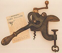 Displaying barmounted corkscrews can be a challenge. Here are a few mounted on a flower pot stand. At the top is the Rotary eclipse.