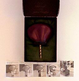 The Uncorker Vintage 1980.© Corker Extraordinaire. Imported by: Bibi Products Co., Inc., U S A. Product of Taiwan. The Uncorker is a registered Trademark of Bibi Products Co., Inc., Culver City, Ca. 90230. © 1980. Reorder #1980. The trademark and copyright information also appear on the underside of the bottle collar. The examples to the left and right are German and Spanish. The corkscrew is a 1980 invention by Gunther Pracht of Germany. |