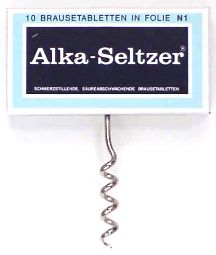 An Alka-Seltzer box handle corkscrew courtesy of Manfred Heckmann in Berlin.