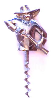 What could be more appropriate than shaking hands with your corkscrew to open a fine bottle of wine? ![]() Above: The mini brass handle corkscrew on the left measures 2" high and his big brother is double his height. The corkscrew on the right has a mother-of-pearl hand gripping a gold plated bar. |