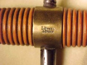 Robert Jennings: I acquired this corkscrew about 20 yrs ago. I just decided to do some research on it and the Virtual Corkscrew Museum popped up. I'd certainly appreciate any help about the piece. Here's the marking:Ron: Your corkscrew is French, made in the latter part of the 1880's. The "L.B. Paris Depose" mark indicates it was manufactured by A. Leboullanger Co. of 31 Rue Michel-le-Comte, Paris, France. L.B. stands for "LE BOULLANGER" and was a mark first used by the George Leboullanger & Sons (1846-1889) in 1873. The mark "DEPOSE" indicates that the design/shape had been possibly registered with the French Patent Office.
