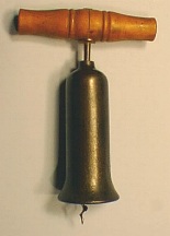 | Nicely turned wood handle with steel barrel. No marks. This appears to be a Chinnock variation. Charles Chinnock's May 27, 1862 patent was for a self-pulling corkscrew. The drawing shows an open barrel for grasping the cork for easy removal. I had not seen the variation pictured here prior to my New Jersey excursion. | ![]() |