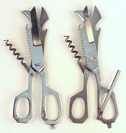 Less than a month later Bull found the scissors on the right side of the picture. This one is complete with Sardine can opener. Answering the question of the suspicious filled hole on one of the handles on the "Luterman scissors." |