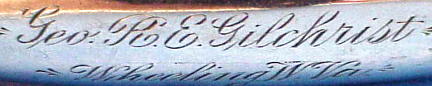 The top of this prong extractor is engraved "Geo. R. E. Gilchrist, Wheeling, W. Va." Marked STERLING 2206, PAT. MAY 9 '99." This is the M. D. Converse patent #624457.