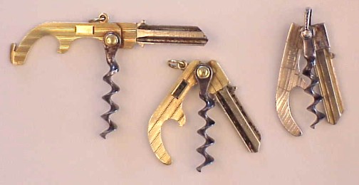 A fifth example is gold. It does not have the cigar box nail remover and the ring for attachment to a watch-chain is located at the end of the cap lifter.