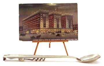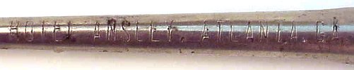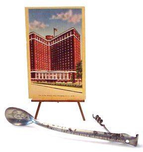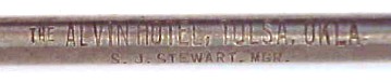 The Alvin Hotel in Tulsa, Oklahoma had "200 outside rooms, all with bath and circulating ice water." The spoon with round bowl reads "The Alvin Hotel, Tulsa, Okla., S. J. Stewart, Mgr." The Barbershop Harmony Society was founded when a number of singers gathered at the Rooftop Garden of the Alvin Hotel on April 11, 1938. |