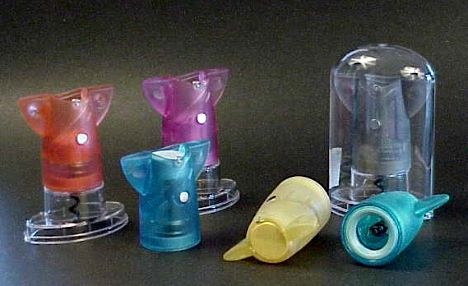 I must admit that today I got as excited as that young boy in me on a Chirstmas morning long ago. I received a package from Hong Kong and this new gizmo called the "Aupener" totally fascinated me. And as I dug deeper into the box, I found more giving me an instant collection of six colors. Each was neatly packaged in a plastic dome over a stand for the "Aupener."