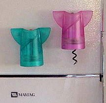I examined every bit of this new corkscrew and couldn't wait to put it to use. I grabbed the blue Aupener and went off to the wine cellar. I picked a nice California Zinfandel for an afternoon treat. I cut the foil with the foil cutter built into the contoured top of the Aupener. I place the frame over the bottle neck and started turning the entire Aupener. The worm grabbed the cork and, after a few easy turns, removed it - completely! I pushed the piston out from the top and removed the cork from the worm. Holding the Aupener upside down and using a sharp downward movement retracts the worm. The corkscrew is safely stored and ready to open another bottle.