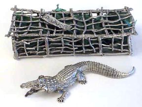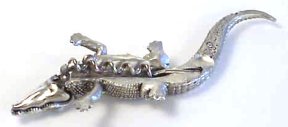 Here's another exciting Riccardo creation - the "Outback Crocodile." This 6 3/4" long critter comes packaged in his own cage. The jaws open to cut the foil on a wine bottle and...hey, where's the corkscrew?...
