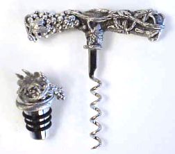 Rounding out Riccardo's corkscrew sculptures is a grape and grapevine design direct pull corkscrew accompanied by a bottle stopper.