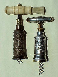 ThomasonOne of the most important inventions of the nineteenth century was that of Sir Edward Thomason. His design was granted English patent number 2617 on May 7, 1802. He produced his corkscrews in Birmingham and was one of the first major producers of corkscrews. The modern "Thomason" is on the right. |